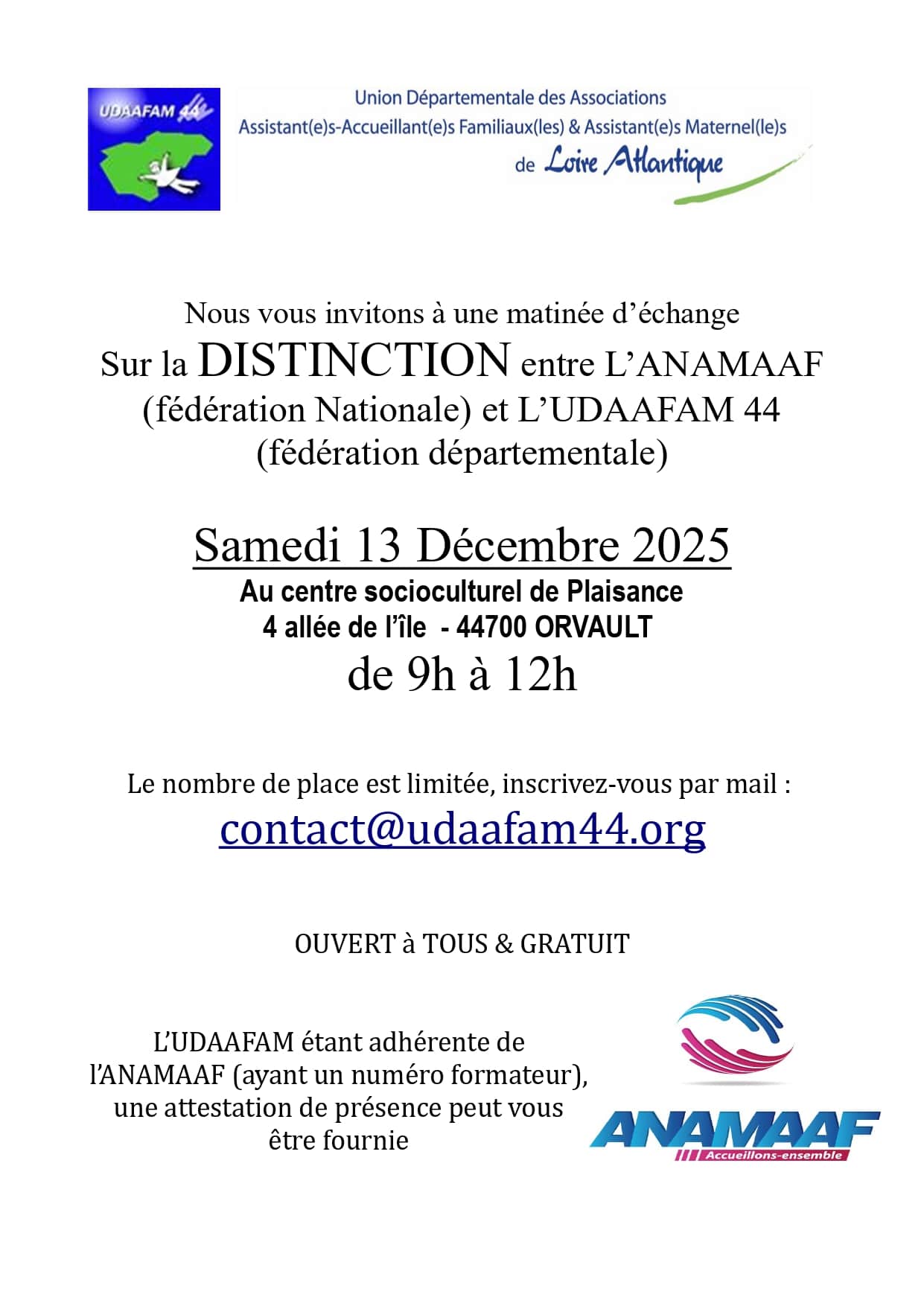 Sur Inscription : contact@udaafam44.org